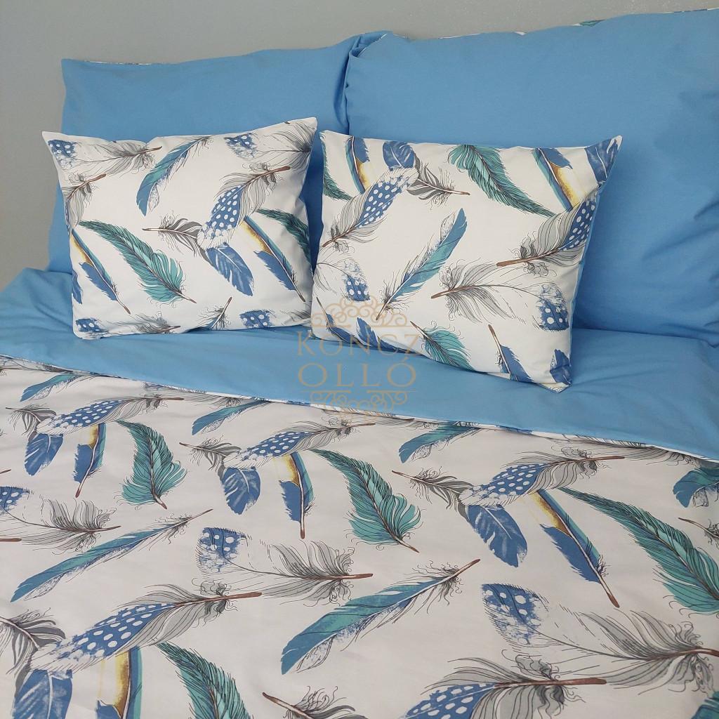 Kék Tollpihe pamutvászon ágyneműhuzat – duplapaplanos szett