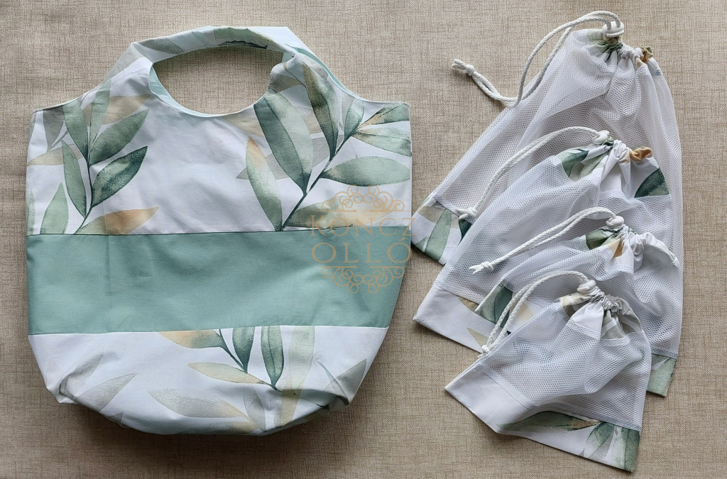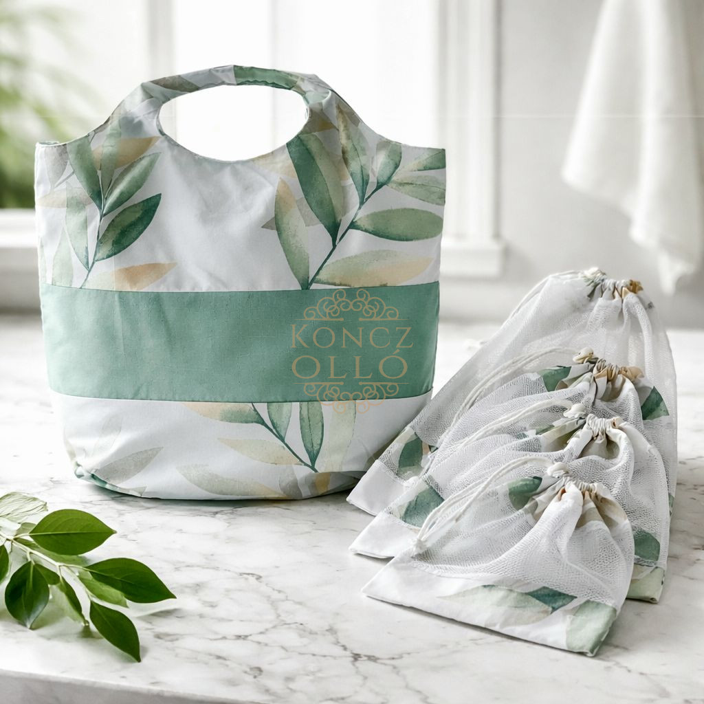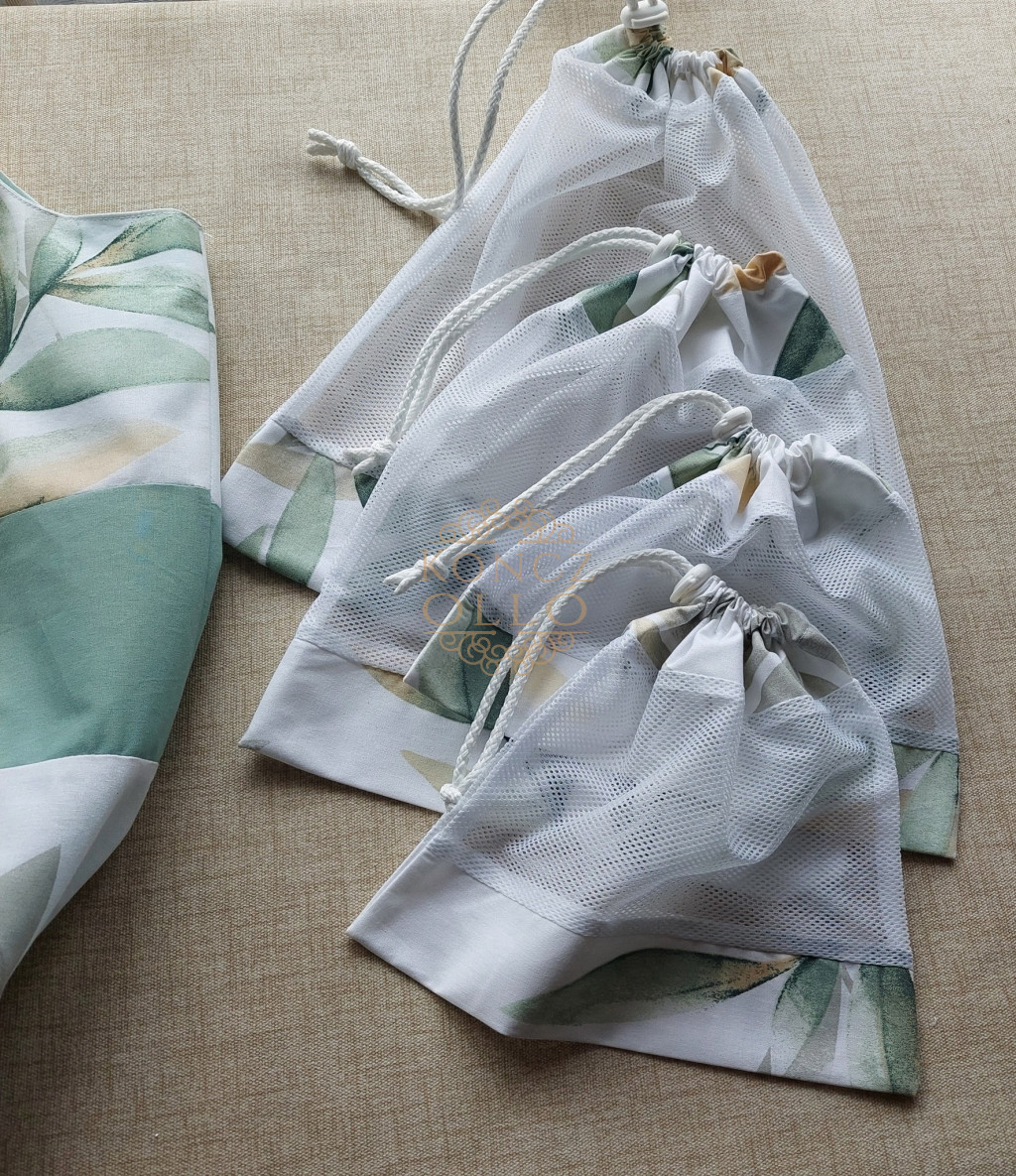 – Hálós zsák: poliészter háló + pamutvászon szegés