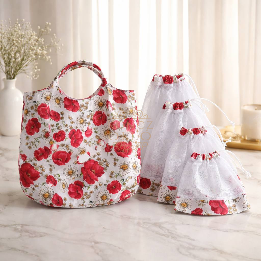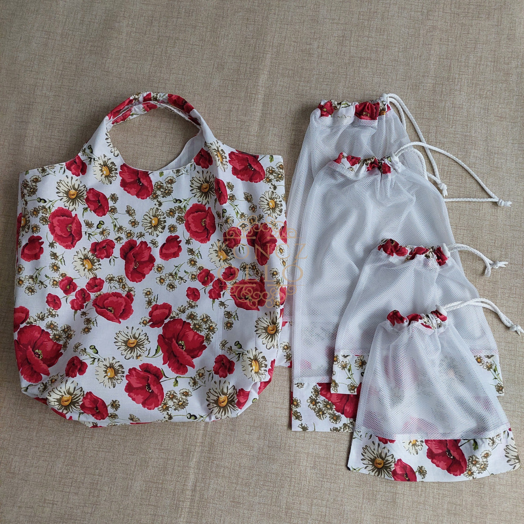 – Hálós zsák: poliészter háló + pamutvászon szegés